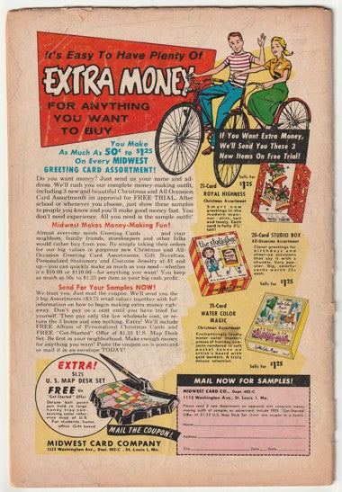 Good/Very Good (G/VG) condition (3.0). This is a solid, complete copy (36 pages) with good colour and gloss. The cover is clean with wear to the spine. There is 1 inch spine split from the bottom. The back cover shows handling and has a partial paper tear at the top edge. Pages are clean, off-white and supple.