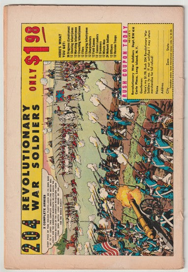 Good (G) condition (2.0). This is a complete, solid copy with great colour and gloss. The cover shows some creasing and handling. The spine shows reading wear along with a half-circle rip (near Superman's feet). The back cover shows handling, a small paper tear near the bottom, but is otherwise clean. Pages are clean, off-white and supple.